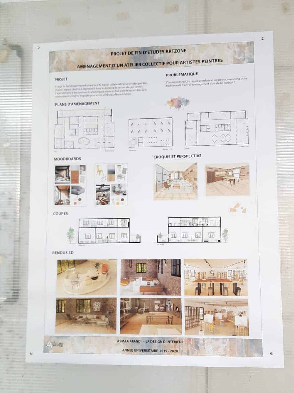 Les étudiants en licence professionnelle en design d'intérieur d'Art'Com Sup ont soutenu, ce Samedi 19 Septembre, leurs projets de fin d'études pour obtenir leur BAC+3 devant un jury composé d'enseignants et de membres de la pédagogie de l'école. Plusieurs projets ont retenu l'attention de notre jury, projets qui se sont distingués par la créativité de leurs porteurs mais également la minutie de la méthodologie proposée ainsi que la praticité du projet sur le terrain.