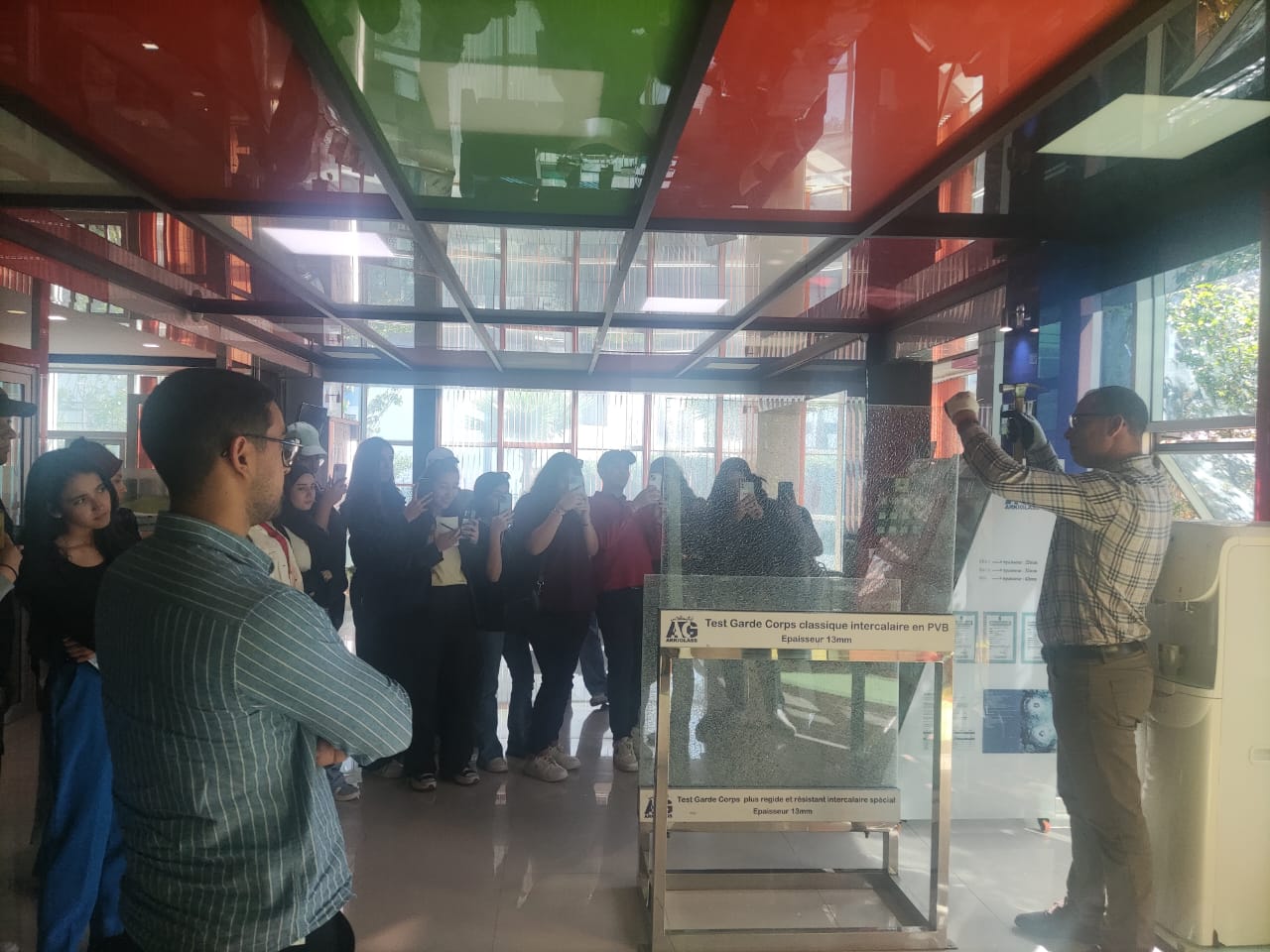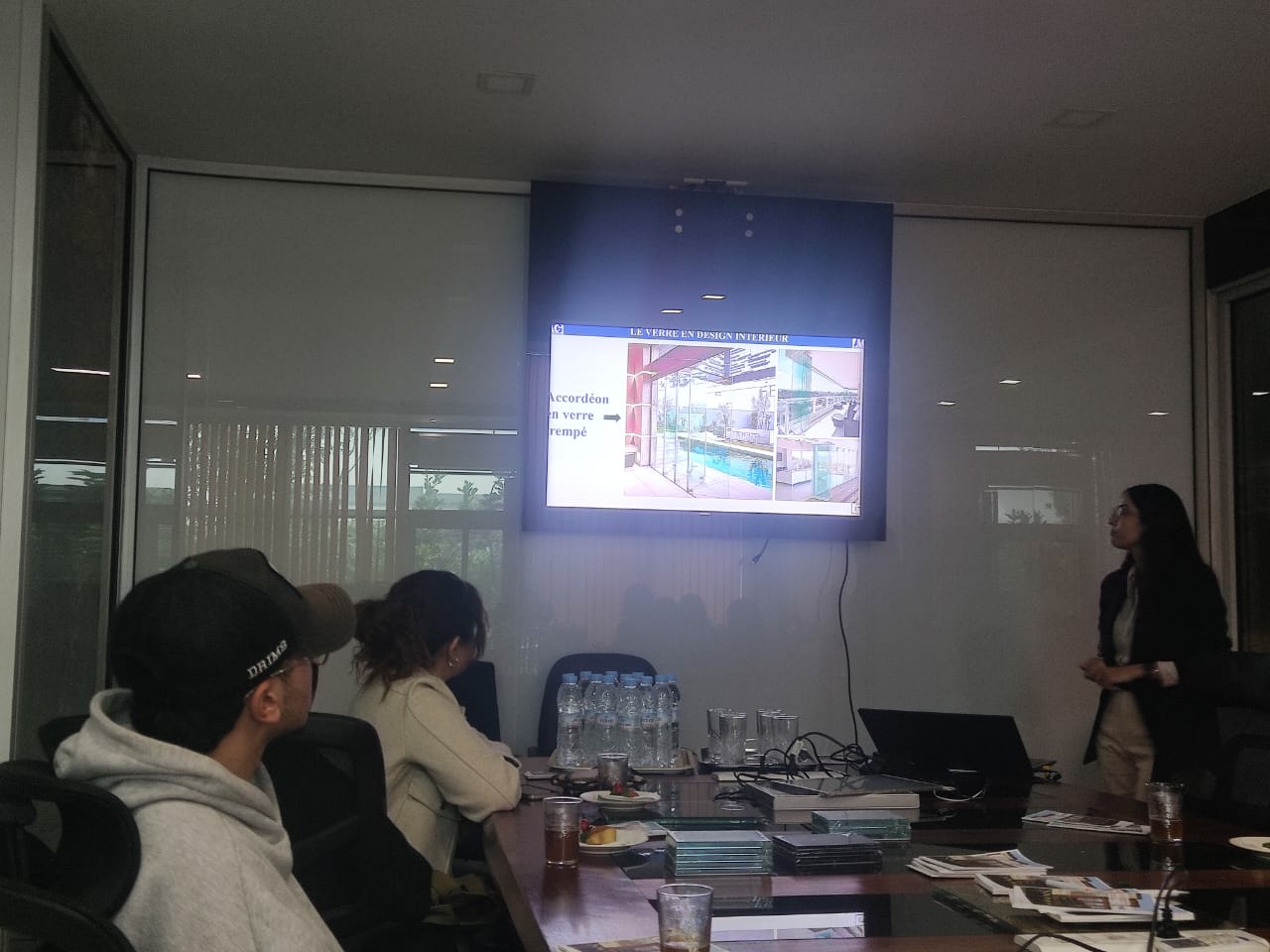 Accueillis par Houda Bellaoui et Imade El Youzghi, les futurs architectes d'intérieur ont pu découvrir les différents types de verre, leurs caractéristiques et leurs applications. Ils ont exploré une variété de verres, notamment les verres de sécurité (verre feuilleté, verre trempé, verre pare-balle, verre pare-feu), les verres décoratifs (lacobel, verre sablé, verre dépoli, verre avec incrustation de tissu) et les verres spéciaux (vitrage isolant, verres vitrocéramiques, verre à opacité contrôlée).