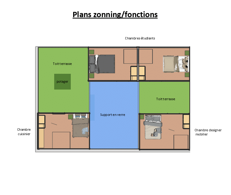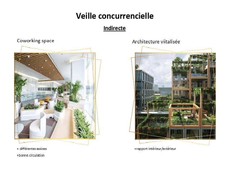 Les étudiants ont dû suivre une certaine méthodologie de travail, en commençant par une veille sociale, une veille concurrentielle, une veille technologique et une veille juridique suivie d'une représentation de leurs projets sous forme de plans, élévations, vues intérieures (images, croquis) exprimant l’organisation du projet, mais aussi ses matériaux, ambiances, couleurs.